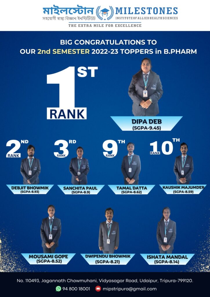 At Milestones Institute of Allied Health Sciences, we believe in going “The Extra Mile for Excellence.” Today, we are incredibly proud to celebrate the outstanding academic achievements of our B.Pharm students.